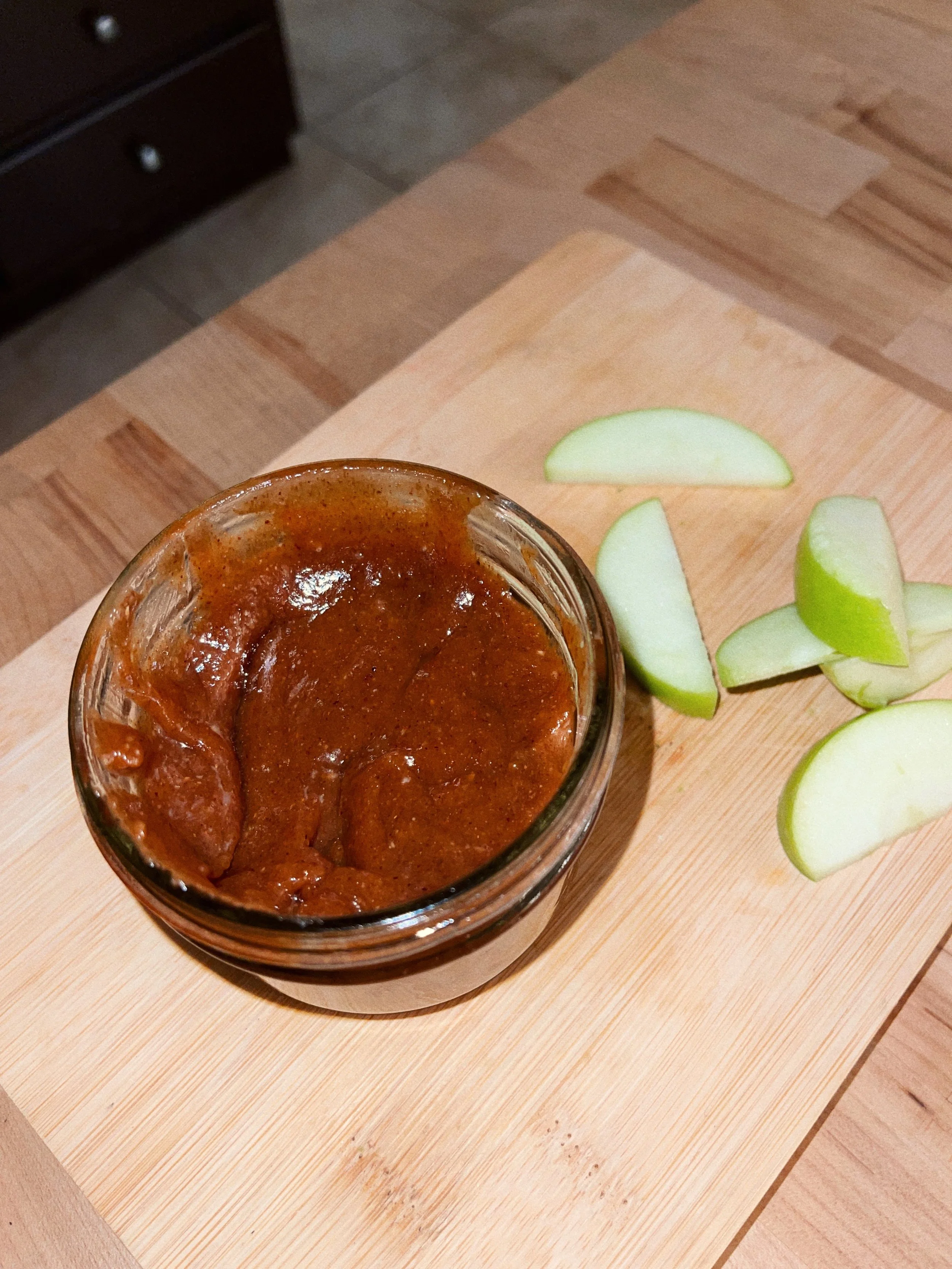 The beauty of this recipe is how stinking easy it is. Through everything into a food processor, start out pulsing and then let it run for a minute or two. Cut up some apples, through a spoonful in your latte, drizzle on some clean brownies… the options are endless with this one.